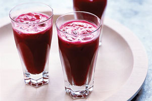 1. Приготовьте при помощи соковыжималки сок из моркови, свеклы, яблока и маринованного имбиря. Вылейте сок в кувшин и размешайте до однородного состояния.